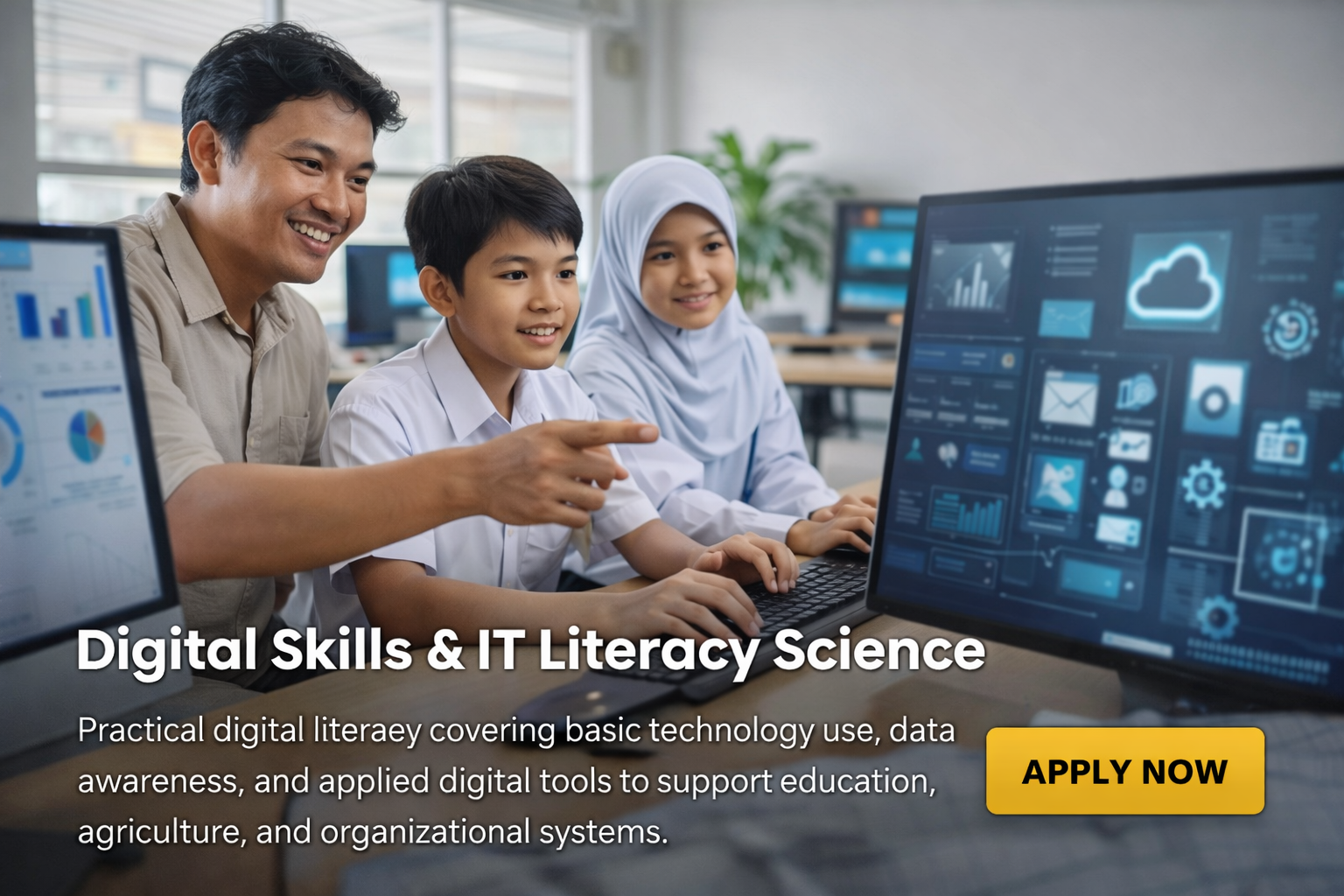Digital literacy for the future generation—covering basic programming, digital content creation, data awareness, and technology ethics.